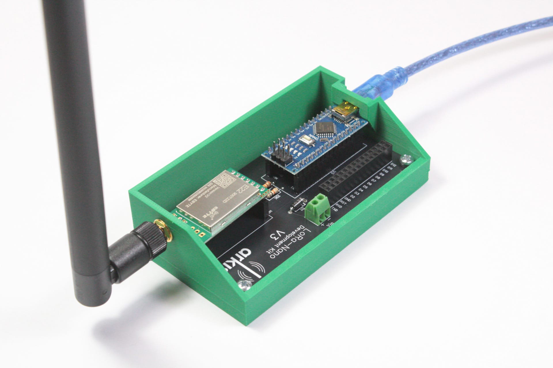 Bu bileşen seti, 868/915 MHz bandında yüksek kazançlı Yagi-Uda anten ve EByte E22 modülü kullanarak uzun menzilli bir LoRa haberleşme seti kurmanıza olanak tanır. Arkış geliştirme kartı üzerine entegre edilen Arduino Nano ve kablo bağlantıları sayesinde uzak mesafe odaklı bir veri iletim altyapısı oluşturulur.